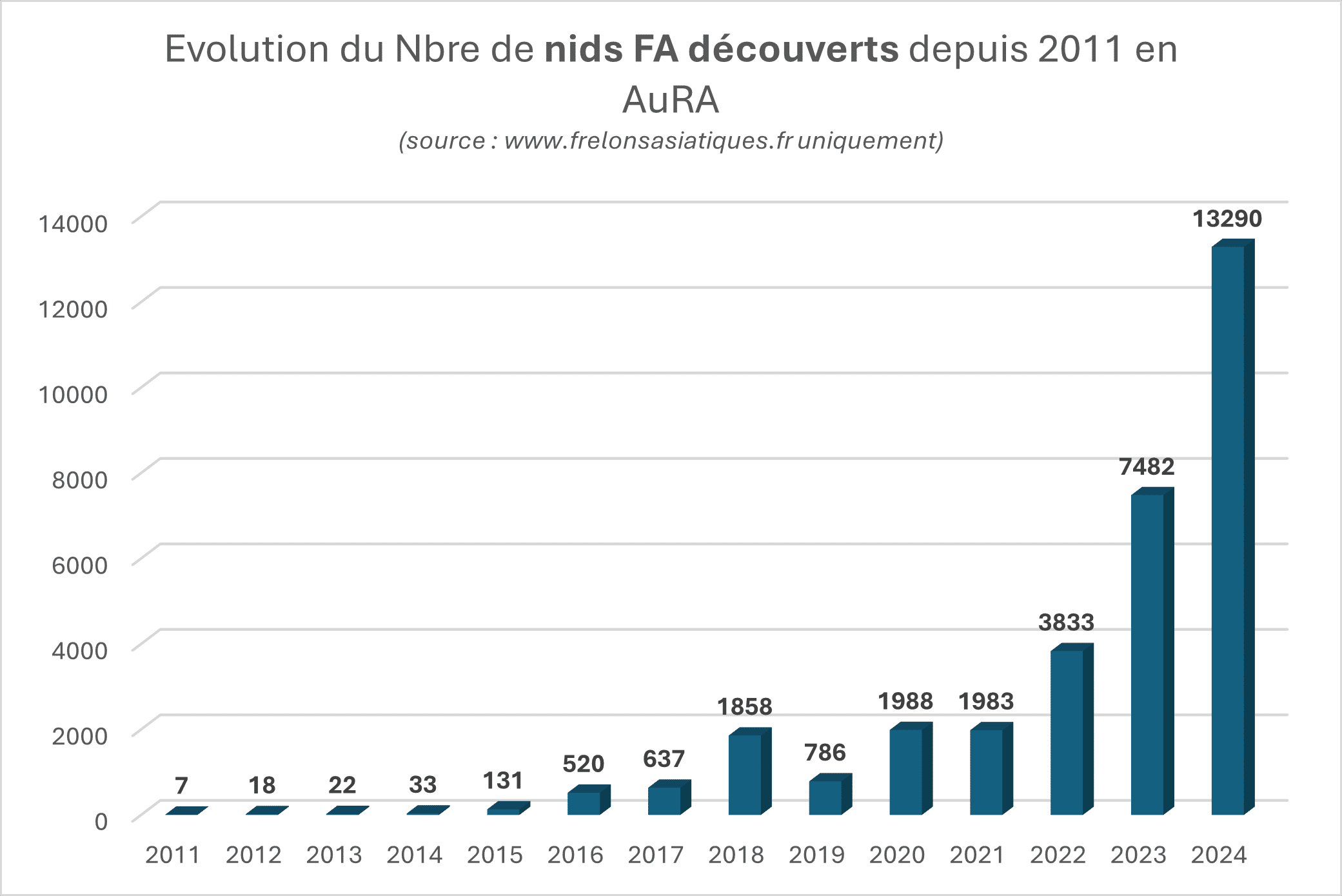 Évolution du nombre de nids signalés en Auvergne Rhône-Alpes